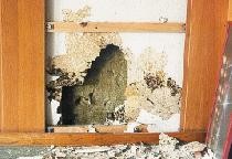 Weil es keine Anzeichen für einen mikrobiellen Schaden gab, wurde die Verschalung erst nach der Schimmelpilz-Spürhund Anzeige geöffnet.